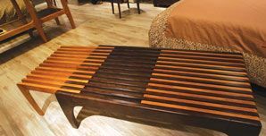 有些家具仿佛被施了乾坤挪移大法,招招出奇制勝。就像這款電視柜,造型非常簡(jiǎn)潔,由直條型的木框組合而成。據(jù)店員介紹,它既可當(dāng)成電視柜,也可以當(dāng)作茶幾,還可以當(dāng)作腳凳使用。一柜多用不說(shuō),它還將變形玩具的變形魅力引用過(guò)來(lái),拉動(dòng)它的兩邊,就可以伸展出它的“臂膀”,像變形金剛突然“長(zhǎng)”出胳膊一樣。將它的雙臂全面展開(kāi),原本不足一米的小身材頓時(shí)變成長(zhǎng)達(dá)一米八的大個(gè)子,非常威猛,或許這就是它之所以可以變化成茶幾,或者腳凳的來(lái)源吧。