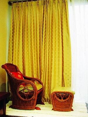 老年人的居室窗簾可選用提花布、織錦布等,厚重、素雅的質(zhì)地和圖案,以及華麗的編織手法,也能體現(xiàn)出老人成熟、穩(wěn)重的智者風(fēng)范。此外,厚重的窗簾帶來(lái)穩(wěn)定的睡眠環(huán)境,對(duì)于老人的身體大有好處。深淺搭配的色澤十分適用于老人的居室。如深胡桃木色的家具可用于床、櫥柜與茶幾等單件家具上,而寢具、裝飾布及墻壁等的色澤則以淺色調(diào)為宜,這樣,單個(gè)居室看起來(lái)既和諧雅致,又透露著長(zhǎng)者成熟的氣質(zhì)。