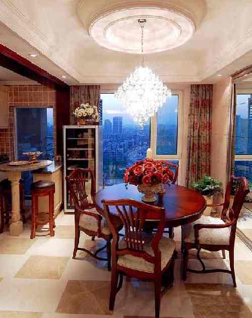 雕花的餐椅,用陶瓷裝飾的展示柜,處處體現(xiàn)新古典風(fēng)格