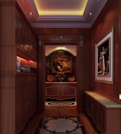 過(guò)道印花地毯搭配歐式風(fēng)情的壁畫(huà)