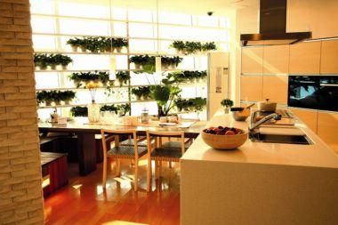 另外,廚房也是不錯(cuò)的休息區(qū),可以在廚房里添設(shè)娛樂設(shè)備,但電視和音響宜遠(yuǎn)離爐臺(tái)與水槽,可存放于同雙眼平高的層架上,以不致碰到食物為宜。若廚房是位于多功能的大房間一隅,在廚房的設(shè)計(jì)上,宜和室內(nèi)其他部分搭配融合,在空間允許的條件下,不妨用多功能桌椅、燈飾或沙發(fā)等獨(dú)立家具來搭配廚具。