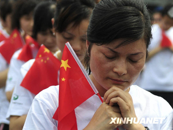 2009年5月12日14點28分,成都市民在****默哀。