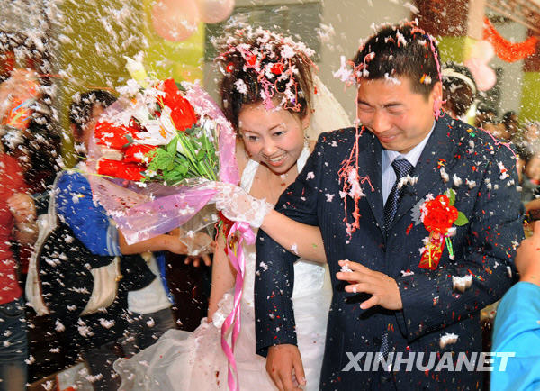 2009年5月1日,寧強縣青木川鎮(zhèn)輔仁學校教師周寒冰與來自山東的姑娘徐秋麗喜結(jié)良緣。因為地震的影響,他們的婚禮拖了半年多。
