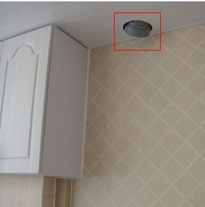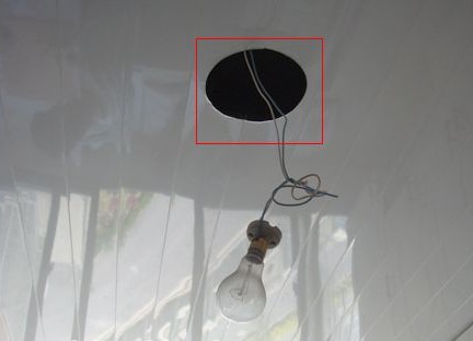 廚房頂面選擇了防火、抗熱、易于清洗的鋁扣板吊頂,并且預(yù)留了廚房燈具的位置,同時也便于施工時使用臨時燈泡進行照明(如圖)。