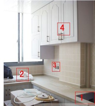 4、櫥柜(安裝完畢):碗柜的頂層不能超過180cm,底層不得低于85 cm,寬度不得超過45 cm,否則會拿放物品會造成不便。