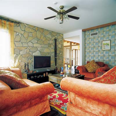 在現(xiàn)代的居家裝潢中,設(shè)計(jì)師更多地建議電視背景墻選用紋理粗糙的文化石鑲嵌,這樣既可以吸音,又加厚了墻體,減低了音響對(duì)其他居室空間的影響,而且能烘托出設(shè)計(jì)獨(dú)特的現(xiàn)代家電的精致感,形成強(qiáng)烈的質(zhì)感對(duì)比。倘若客廳空間面積較大,也可用文化石制作一面古典風(fēng)情濃郁的主題墻,使客廳裝潢在精致中流露出一絲隨意?;蚴窃陉柵_(tái)營(yíng)造頗具田園風(fēng)格的一角。同時(shí),也要注意文化石的主要作用就是裝飾點(diǎn)綴,不要濫用,否則會(huì)適得其反。