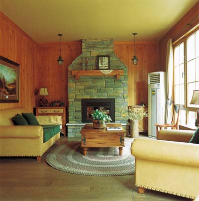 表面凹凸不平顏色夾雜的文化石所裝點(diǎn)的壁爐,不經(jīng)意間使人回到了早已相隔重重的中世紀(jì)。