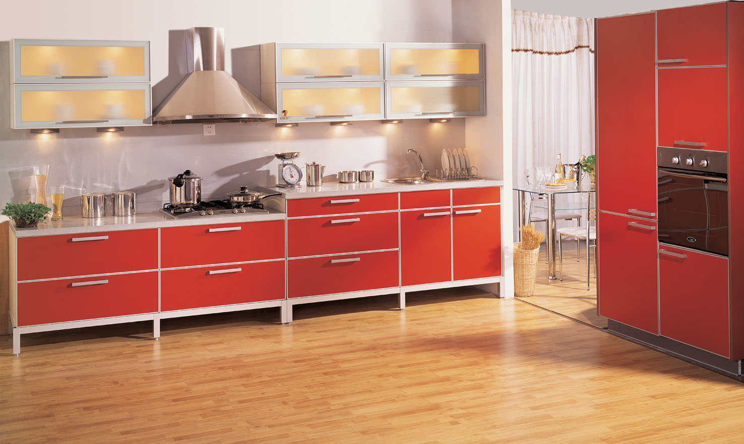 2、烤漆櫥門:大多采用中密度板,進過銑型、烤漆處理后制造而成。具有色澤鮮艷、抗污能力強、容易清潔等特點。