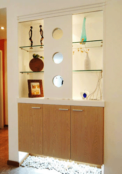 此外,玄關(guān)的墻壁間格應(yīng)下實(shí)上虛:面對大門的玄關(guān),下半部宜以實(shí)墻作為根基,扎實(shí)穩(wěn)重,而上半部則可用玻璃來裝飾,以通透而不漏最理想。必須注意的是,不能使用鏡面玻璃,會反射的鏡子通常不可面向大門,因?yàn)榧抑胸?cái)氣將會被反射出去。