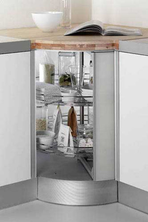再巧妙的設(shè)計(jì),最終都要實(shí)用。將幾個(gè)隔板設(shè)計(jì)成“平行線”狀,或高或低,再裝上一些CD架,再配以玻璃或者金屬的材質(zhì),雖談不上設(shè)計(jì)新穎,但是始終為消費(fèi)者所厚愛(ài)。還有一種“排個(gè)頭”設(shè)計(jì),小柜子套在大柜子里,用不上的時(shí)候,所有柜子都藏在最大的柜子里面。角柜以它多變的形式使角落這個(gè)邊緣空間被有效地開(kāi)發(fā)出來(lái),使儲(chǔ)物更方便,生活更有趣。