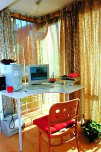 不過設(shè)計陽光書房要充分考慮到陽光衛(wèi)生,過于強烈的陽光會使人看不清電腦屏幕,而且可能還會傷害眼睛,因此建議設(shè)計兩道窗簾——一道厚的窗簾用來防寒;一道薄的窗紗用來中和中午刺眼的強烈陽光。