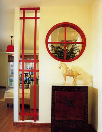 玄關(guān)是入門(mén)處的一塊視覺(jué)屏障,避免外人一進(jìn)門(mén)就對(duì)整個(gè)居室一覽無(wú)余;同時(shí),也是家人進(jìn)出門(mén)時(shí)停留的回旋空間。玄關(guān)的設(shè)立應(yīng)充分考慮與整體空間的呼應(yīng)關(guān)系,使玄關(guān)區(qū)域與會(huì)客區(qū)域有很好的結(jié)合性和過(guò)渡性,應(yīng)讓人有足夠的活動(dòng)空間。