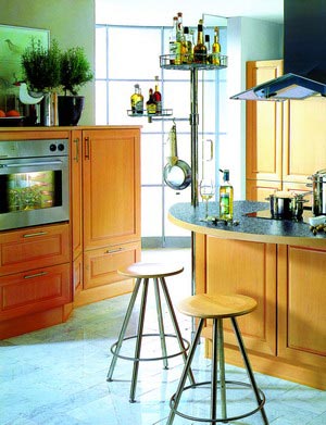 風(fēng)格多樣的餐臺(tái)、靈活搭配的擱板與櫥柜、水池、灶臺(tái)充滿(mǎn)創(chuàng)意地隨意組合,摒棄傳統(tǒng)餐桌的單調(diào)呆板,一物多用的餐桌組合帶給人更多的生活情趣。