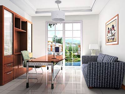 面積充裕的居室中,可以獨立布置一間書房,面積較小的居室可以辟出一個區(qū)域作為學習和工作的地方,可用書櫥隔斷,也可用柜子、布幔等隔開。