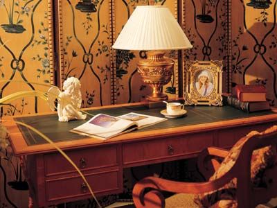 靠窗的書桌,要注意窗外十公尺以內其它房屋射入的尖角,尖角距離越遠影響越小,越近影響越大。寫字臺上的工作必需用品,也是書房的裝飾陳列品。如文房四寶的安置,筆筒、筆架的擺放,無不具有很強的觀賞價值且具有裝飾性。