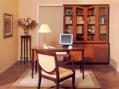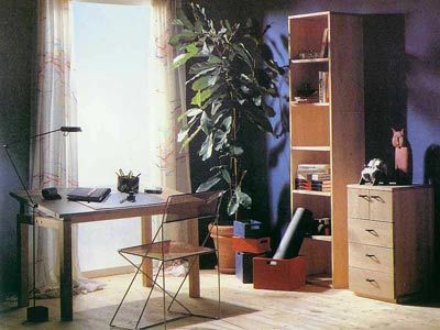 書房的家具除了要有書櫥、書桌、椅子外,兼會客用的書房還可配備沙發(fā)茶幾等。書櫥應靠近書桌以存取方便,書櫥中可留出一些空格來放置一些工藝品以活躍書房的氣氛,書桌應置于窗前或窗戶右側,以保證看書、工作時有足夠的光線,并可避免在桌面上留下陰影。書桌上的臺燈應靈活、可調,以確保光線的角度、亮度,還可適當布置一些盆景、字畫以體現書房的文化氛圍。
