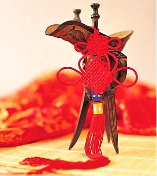 (8) 桃木劍。這個應該是大家最熟的用途了用桃木削制的“捉鬼”或“斬鬼”的法寶,和“桃印符”、葦索等配套使用,這已是“牛鼻道人”之類手中的物事了,但取義源于古人篤信桃木有鎮(zhèn)鬼的神力。