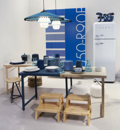 外形似古典的傘狀、“傘”檐還有黑色圓點(diǎn)的吊墜裝飾,這款餐廳吊燈頗有江南的秀美與古典美,透著主人清雅的格調(diào)。另外,與藍(lán)色主題的餐廳布置十分搭配。
