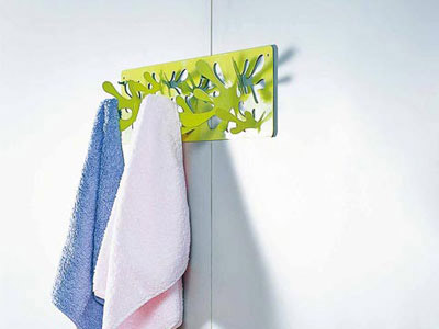 收納浴衣、浴巾、毛巾等織物的掛件,掛鉤設(shè)計成枝丫的形狀,能同時掛放多件織物,可安放在淋浴區(qū)的附近,掛換洗衣物。