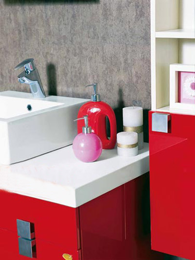 配有紅顏色浴室家具的衛(wèi)浴間,梳洗臺上可選購幾件紅色系的盥洗用品,擺在臺面上很好看,而且還能和家具的顏色形成呼應(yīng)?!?/SPAN>