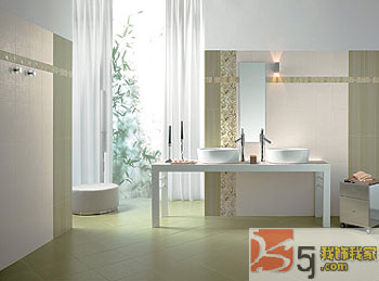 陽光型 今天的瓷磚已不再是素面朝天,或只是帶有一些簡單花紋,它們演繹著衛(wèi)浴間不同的風(fēng)格與個(gè)性。凈面瓷磚色彩愈發(fā)明艷,它雖然沒有任何花飾,但并不代表沒有設(shè)計(jì),在色彩上不再拘泥于黑、白,或一些淺淡的顏色。明麗的色彩被大膽運(yùn)用,艷黃、寶石藍(lán)、鮮紅、翠綠,不一而足,讓人們擁有更多想象與發(fā)揮的余地。