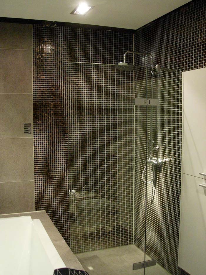 要注意防水、防滑。地面裝飾材料應(yīng)選用有凸起花紋的防滑地磚,這種地磚不僅有很好的防水性能,而且即使在沾水的情況下,也不會太滑。要留有1/100的泄水坡度,斜坡朝向地面下水口,地磚接縫要粗細(xì)一致,并且和墻磚接縫要對齊。浴缸的墻采用磚砌貼瓷磚方式,地磚最好先貼至墻下方,再貼壁磚,以免產(chǎn)生破口。
