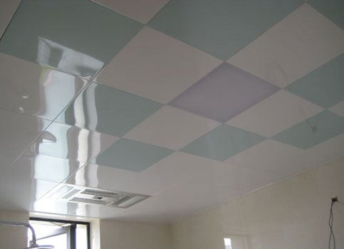 衛(wèi)生間的頂部防潮、遮掩最重要。最好采用防水性較好的PVC扣板做吊頂,這種扣板可以安裝在龍骨上,能起到遮掩管道的作用。還可以玻璃和半透明板材等做吊頂。