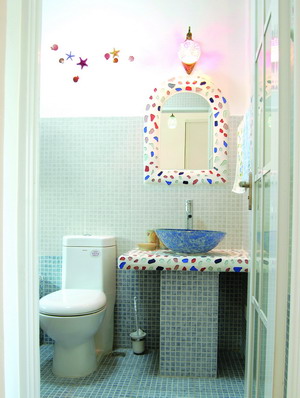 Lulu家兩個洗手間的關(guān)鍵詞都是:海洋、海洋!由于身處深圳這樣終年炎熱的地方,Lulu很想讓人一進(jìn)洗手間首先感覺到?jīng)鏊?