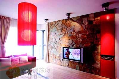 具有不規(guī)則美感的石頭電視墻是家里最大的亮點