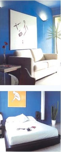 具有天生設(shè)計才能的DavittChin用他的有限預(yù)算,做了大量創(chuàng)新性的工作。他親自動手粉刷了公寓,式樣奇妙的家具也是他親自設(shè)計的。強烈的藍(lán)綠色和簡潔的線條賦予了這個公寓的客廳強烈的個性。在藍(lán)綠色的墻和天花板下,白色并不引人注目,卻強調(diào)了門和家具的方位。為了避免可能產(chǎn)生的單調(diào),DavittChin從市場精心挑選了兩個蝴蝶椅,深橙色和黑色的椅子與四周形成了鮮明的對比。此外,從簡約的理念出發(fā),他從燈具店購來一個曲線優(yōu)美的落地?zé)簦c環(huán)境相得益彰。最終營造出了他自己的格調(diào)。