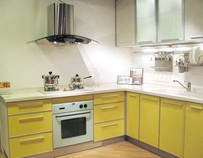 由于家具的色彩往往會(huì)左右環(huán)境的色彩,因此,對(duì)廚房家具色彩的要求是能夠表現(xiàn)出干凈、刺激食欲和能夠使人愉悅。通常能夠表現(xiàn)出干凈特點(diǎn)的主要有灰度較小、明度較高的色彩如白、乳白、淡黃等,而能夠刺激食欲的色彩主要是與好吃的食品較接近、或在日常生活中能夠強(qiáng)烈刺激食欲的色彩,如橙紅、橙黃、棕褐等。能夠使人愉悅的色彩就復(fù)雜多了,不同的人,不同的生活環(huán)境對(duì)色彩的喜好有很大的變化。下面我們就推薦幾款不同色彩的櫥柜。