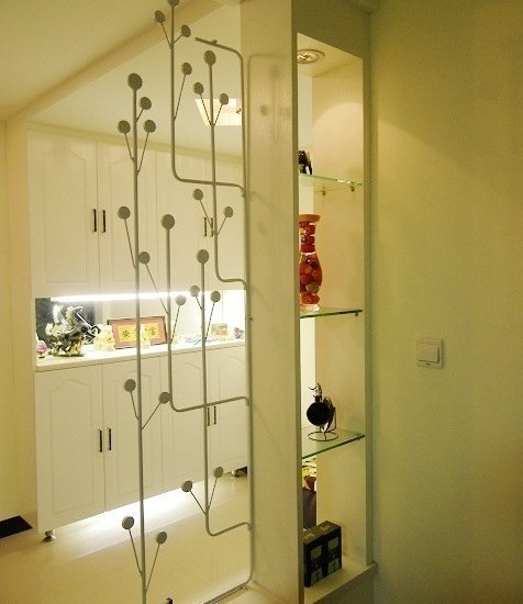 玄關(guān)的燈光對(duì)整體的色彩有非常大的影響 ,因?yàn)樾P(guān)通常沒(méi)有采光的窗戶,只能采用人工照明。通常情況下,玄關(guān)適宜采用白熾燈,而不宜采用日光燈,因?yàn)槿展鉄粼诿娣e較小的玄關(guān)里會(huì)有過(guò)于刺眼及冷淡的效果。此外,采用吸頂燈或壁燈也是不錯(cuò)的選擇。