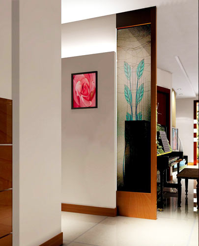 3、開門見畫。若開門就能見到一副雅致的小品或圖畫,一能體現(xiàn)居者的涵養(yǎng),二則可緩和進(jìn)門后的倉(cāng)促感。