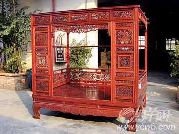 傳統(tǒng)的中式床一般三面圍合的,從一面上下,像一個(gè)小房子,大戶人家會(huì)設(shè)計(jì)床罩,中式床上面雕龍繪鳳,在沉靜中彰顯華麗。如果說到中式床的人文特征,有一位女士說過這樣的感受:“傳統(tǒng)的中式床是單面上下,丈夫睡在外面,夫人睡在里面,夫人要起夜,要把丈夫拍醒,夫人從丈夫的后面下去?,F(xiàn)在老公在老婆身上一下就跨下去了,這就看出了夫妻關(guān)系相濡以沫,老婆覺得把老公吵醒,心里多少有一點(diǎn)打擾他睡覺,關(guān)懷就在互相麻煩的過程中體現(xiàn)出來的,我們床兩邊上下,互相不麻煩,半夜里走一個(gè)人都不知道。”