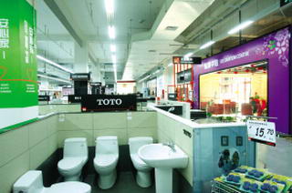在功能分區(qū)上,一樓集中了衛(wèi)浴產(chǎn)品、熱水器、燈具、裝潢中心……樓下則是瓷磚、板材、五金、木門、漆料等等的天下,總共近5萬種商品。兩層式的賣場格局將軟、硬性材料的購買場所有區(qū)別地分開,讓消費者在選購商品時變得更簡單、更直接,更加有利于選購,使其更合理、更舒適。