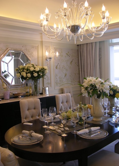 寬大,厚重的家具也是歐式風(fēng)格中必要的元素。歐式客廳頂部喜用大型燈池,并用華 麗的枝形吊燈營造氣氛。門窗上半部多做成圓弧形,并用帶有花紋的石膏線勾邊。入廳口處多豎起兩根豪華的羅馬柱,室內(nèi)則有真正的壁爐或假的壁爐造型。墻面最好用壁紙,或選用優(yōu)質(zhì)乳膠漆,以烘托豪華效果。地面材料以石材或地板為佳。歐式客廳非常需要用家具和軟裝飾來營造整體效果。深色的橡木或楓木家具,色彩鮮 艷的布藝沙發(fā),都是歐式客廳里的主角。還有浪漫的羅馬簾,精美的油畫,制作精良的雕塑工藝品,都是點染歐式風(fēng)格不可缺少的元素。