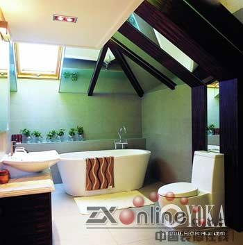 大量的白色,大量的直線條,雖然那條刻意“凌亂”的桔紅色浴巾給畫面增添了不少隨和,為了保持潔白色調(diào)的統(tǒng)一,甚至連浴缸邊的花、沐浴用的拖鞋和衛(wèi)浴間的排氣扇都注意到了。看來,衛(wèi)浴間的主人不會輕易對自己的要求打折扣,只要條件允許就會務(wù)求盡善盡美。直線條在視覺上是“堅硬”的,衛(wèi)浴間里也沒有絲毫用來掩飾的設(shè)計,表現(xiàn)出坦蕩直率而不茍且。衛(wèi)浴間主人這種缺乏掩飾的個性搭配上稍許的完美傾向,活脫脫像一個不羈的詩人。