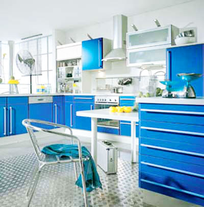 藍(lán)色,是一種令人產(chǎn)生遐想的色彩。傳統(tǒng)的藍(lán)色常常成為現(xiàn)代裝飾設(shè)計(jì)中熱帶風(fēng)情的體現(xiàn)。藍(lán)色還具有調(diào)節(jié)神經(jīng)、鎮(zhèn)靜安神的作用。藍(lán)色清新淡雅,與各種水果相配也很養(yǎng)眼,但不宜用在餐廳或是廚房,藍(lán)色的餐桌或餐墊上的食物,總是不如暖色環(huán)境看著有食欲;同時(shí)不要在餐廳內(nèi)裝白熾燈或藍(lán)色的情調(diào)燈,科學(xué)實(shí)驗(yàn)證明,藍(lán)色燈光會(huì)讓食物看起來(lái)不誘人。但作為衛(wèi)浴間的裝飾卻能強(qiáng)化神秘感與隱私感。