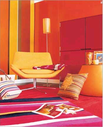 橙紅色:橙紅色令人想起秋天的果實(shí),所以這種色彩有很濃的大自然氣息,恰當(dāng)運(yùn)用會(huì)使居室有一種充滿活力的感覺。在清涼的初春選一塊橙紅色的窗簾,沙發(fā)上選兩塊橙紅色的靠墊,都不失為頗有靈性的選擇。