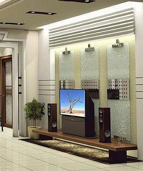 還是有很多人喜歡簡約、現(xiàn)代的裝修風(fēng)格,采用玻璃與金屬材料做電視背景墻,能給居室?guī)砗軓?qiáng)的現(xiàn)代感,所以它也是人們常用的背景墻材料,雖然其成本相對不是很高,不過施工難度較高。也有些消費(fèi)者愛用烤漆玻璃做背景墻,對于光線不太好的房間還有增強(qiáng)采光的作用。