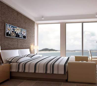 你的臥室很大,旁邊還有一個單獨的儲衣室。而臥室內(nèi)只擺放一張床和兩個床頭柜,墻上掛一幅你喜愛的畫。