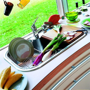 與臺面融為一體,一次沖壓成型看不到任何接縫。圓形的水盆是時下最流行的設(shè)計,適合古典和現(xiàn)代的廚房風(fēng)格,同時可以與圓形燃氣灶搭配使用,凸現(xiàn)廚房整體風(fēng)格。值得一提的是,與方形水盆相比,同樣的容積圓形水盆占地更小。