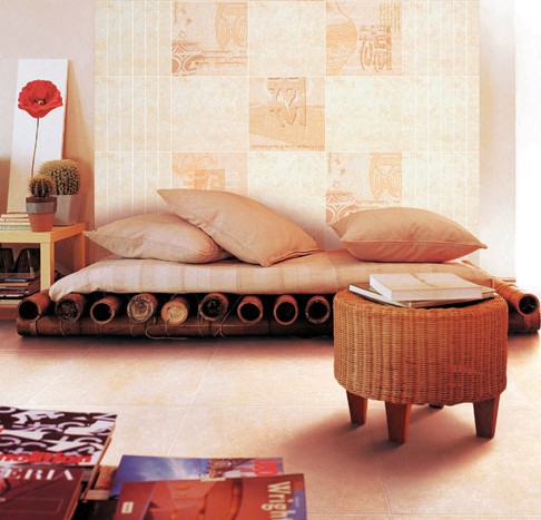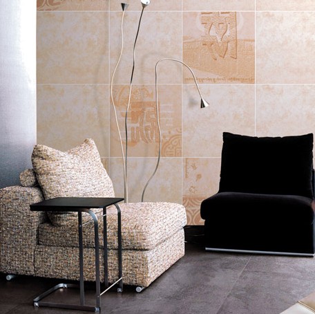 客廳的輪廓以斜插竹桿、磚體屏風(fēng)劃分,豪華的歐式吊燈與熱情洋溢的“威尼斯春天”系列地磚上下呼應(yīng),真皮沙發(fā)套裝,硬木茶幾,墻面是由墻壁上凹凸混鋪的瓷磚和茶色的反光鏡片巧妙的穿插。整個(gè)客廳活潑而不炫亂,更顯現(xiàn)代風(fēng)尚,無(wú)論新朋舊友皆可由衷感受到主人的熱情好客與雍容大方。