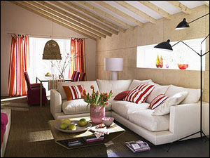 但經(jīng)過裝飾,我們發(fā)現(xiàn)其實這樣的房型也蠻可愛的。空間私密,很適合兩口之家。為了將尖頂臥室調亮光線,我們將墻壁刷成大面積的粉紅色,床單靠枕都換成大紅色,屋內的氣氛頓時變得溫馨起來。由于天窗通風效果好,我們利用這個優(yōu)點,在衣柜上索性采取了無門設計,以布簾替代,拿取衣服方便,也讓臥室顯得輕巧許多。房頂中央吊上一盞梭形紙燈,柔和的光線很適合臥室的曖昧情調。至于尖角落,我們利用那丁點空間做出一排暖氣片,位置高度恰到好處。能直接烘曬我們的小衣服,美觀又實用。天窗雖小,但裝上百葉窗后,顯得精致了許多。總體感覺,不規(guī)則的臥室,裝飾比規(guī)矩的臥室更簡單,而且容易展現(xiàn)小情調。