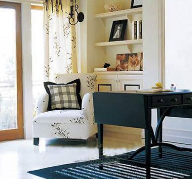 色彩是一種有明顯效果的裝飾手段,不同的色彩賦予人不同的距離、溫度和重量感。比如紅、黃、橙等暖色,給人一種凸起的感覺(jué);而藍(lán)、青、綠等冷色,則給人一種景物后退的感覺(jué)。實(shí)際上,距離并沒(méi)有變,只是色彩給人們的眼睛造成了一種錯(cuò)覺(jué)。利用色彩的這個(gè)特點(diǎn),比較小的房間就應(yīng)該用亮度高的淡色作為主要色調(diào),比如淡藍(lán)或淺綠等。這樣的色彩使空間顯得開(kāi)闊、明快。另外,地可以使用中性的淺冷色來(lái)改變窄小空間的緊迫感。如果房間不但小而且低矮,那就應(yīng)該用遠(yuǎn)感色,即把天花板和墻面涂成同一淺冷色,這同樣能取得空間開(kāi)闊的效果。如果是長(zhǎng)方形的房間,相距比較近的兩面墻壁,一面涂以白色或其它淡顏色,另一面涂以深于前者的同種色調(diào)。這樣深、淺色調(diào)的對(duì)比,可以產(chǎn)生拉長(zhǎng)兩墻之間距離的效果。另外,沙發(fā)套、床單、桌布等如果選用與墻壁顏色相同或相似的顏色,這種單調(diào)的配色也能使室內(nèi)空間產(chǎn)生沿各個(gè)方面擴(kuò)大的視覺(jué)。