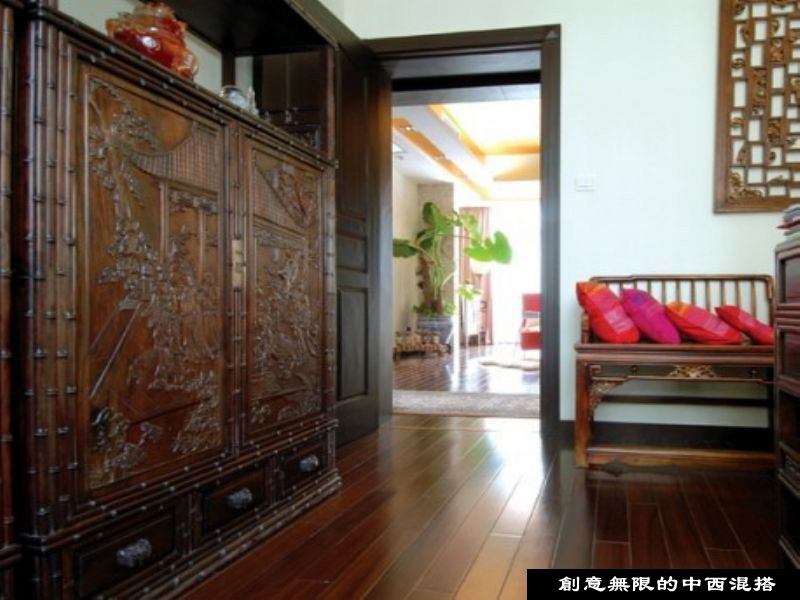 概要: 此套案例為中西混搭,脫去古板外衣的中式裝修,混入歐洲新古典的壁爐,餐桌椅,配以綠色植物,讓空間變得華麗而真實(shí)?! £?yáng)臺(tái)打造成飄窗,桃紅的簾子,鐵藝的沙發(fā),可坐可躺,真真自由自在??蛷d皮質(zhì)的沙發(fā),歐式的布藝椅子,點(diǎn)睛之筆在于胡桃木的鋼琴。這類明清樣式的家具,價(jià)格不菲,更能彰顯主人的高雅品位。