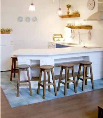 此外,吧臺或上下吊柜也都具有收納功能,一般吧臺可兼做早餐臺,高度以85公分最佳,用一般座椅即可,此吧臺還可當工作臺使用;超過100公分的吧臺,就需要使用高腳凳,不過,收納功能相對較強;吊柜也可做成有門片的雙面式或層板式,可收納雜物,層板可放餐杯或咖啡杯、酒杯等裝飾性的餐具。