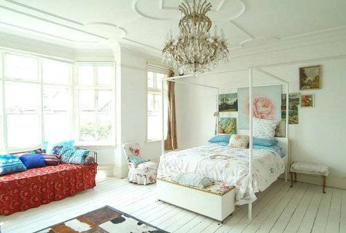 大臥室,白色依然是主色調(diào),溫馨的小花,點(diǎn)綴滿(mǎn)床
