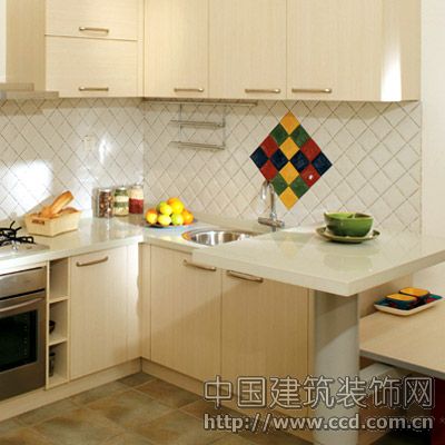 小面積廚房一方面要注意功能完備,更要注意最大限度地提高空間利用率,所以盡量把能放起來的東西都收進(jìn)去,讓臺面顯得清爽。 上柜和下柜之間的空間可以設(shè)計(jì)一幅墻面擱架,把零七八碎的盤、杯等全部收納。
