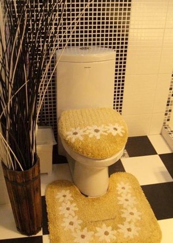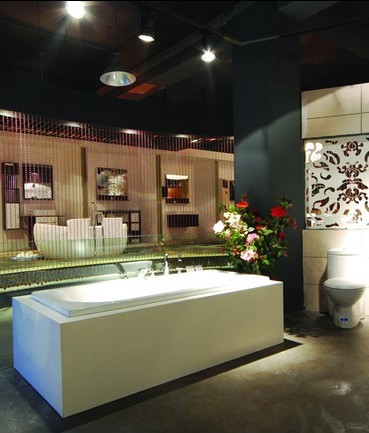 黑色、紫色,花卉,一派自然中繁榮的景象,把它們運(yùn)用在衛(wèi)生間中也一樣溫馨,再配上幾只紅白色花卉和帶有神秘感的紫色線簾,更顯得素雅、別致。